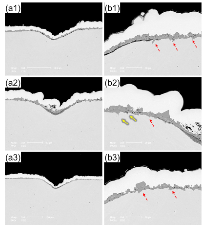 图1. 表面处理的划伤试样经应力腐蚀试验后的截面形貌